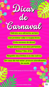 A Equipe de Atenção à Saúde DASAS/DSAN adverte sobre Saúde e Segurança no carnaval