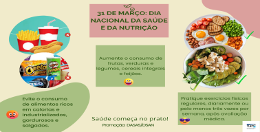 A Equipe de Atenção à Saúde DASAS/DSAN adverte sobre o dia da saúde e nutrição, celebrado em 31 de março no Brasil